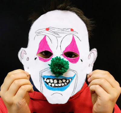A máscara que eu mais gostei foi a do Fábio do 6ºG que fez do palhaço assassino